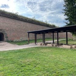 Durch einen etwa 800 Meter langen unterirdischen Gang, der früher zu den Wehranlagen der Festung gehörte, erreicht man die Befestigungsgräben im Nordosten des Festung und den Hinrichtungsplatz. Hier befand sich zwischen den Wällen der ehemalige Militärschießstand, der von der Gestapo in der Zeit ab Mai 1943 als Hinrichtungsplatz genutzt wurde. Hier wurden vom Gericht ausgesprochene aber auch willkürliche Hinrichtungen auf Anordnung der Gestapo von dem aus der Wachmannschaft gebildeten Exekutionskommandos durchgeführt. An den Hinrichtungen beteiligten sich auch immer wieder Aufseher des Gefängnisses, deren Angehörige (so Oberst Svoboda) den Hinrichtungen von einem Festungswall aus (dem sogenannten Balkon) zusehen konnten.