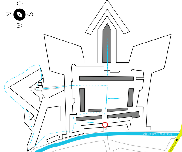 Im Torbogen befindet sich auf der Linken Seite der Eingang zu einer Ausstellung, die sich mit der Geschichte der Festung und Stadt Theresienstadt vor 1939 beschäftigt.